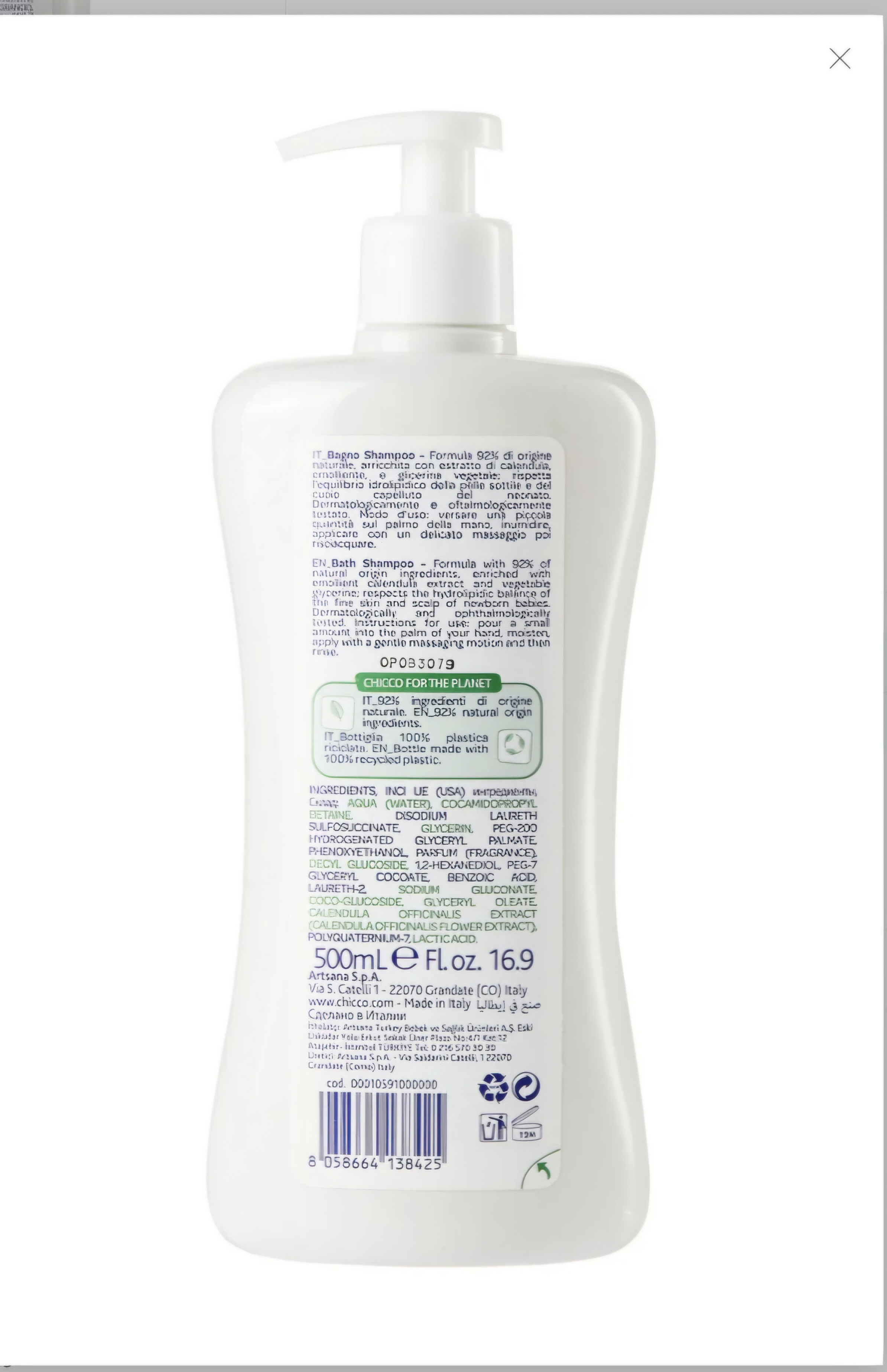 شامپوی مو و بدن با فرمول بدون اشک، شامپویی با منشأ طبیعی از سری Baby Moments است که ۹۲٪ ترکیبات گیاهی دارد و از تعادل هیدرولیپیدی پوست حساس و پوست سر نوزادان محافظت میکند.از نظر پوستی و چشمی آزمایش شده است.غنی شده با عصاره کالاندولا و گلیسیرین گیاهی.شامپو بچه چیکو مدل Moments حجم 500 میلی لیترویژگیهای محصول